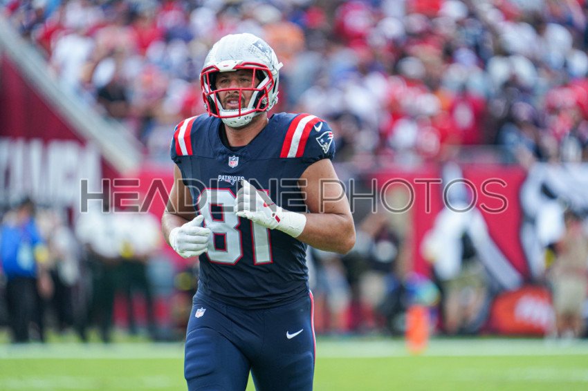 Tampa Bay, Florida, USA, November 9, 2025, New England Patriots tight end Austin Hooper #81 at Raymond James Stadium. (Photo Credit: Marty Jean-Louis)