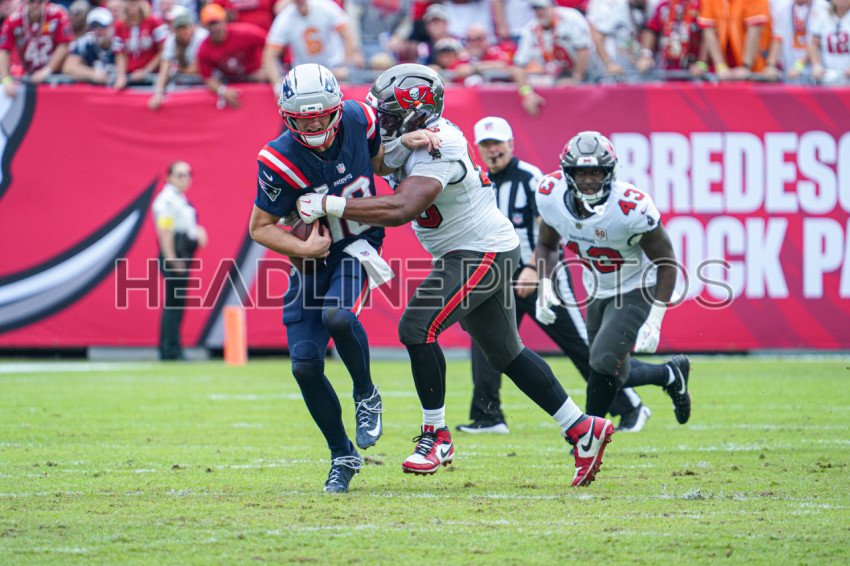 Tampa Bay, Florida, USA, November 9, 2025, New England Patriots quarterback Drake Maye #10 on the run at Raymond James Stadium. (Photo Credit: Marty Jean-Louis)