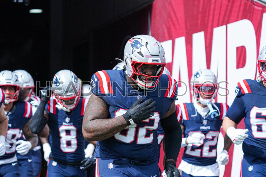 Tampa Bay, Florida, USA, November 9, 2025, New England Patriots player Joshua Farmer #92 runs out of the tunnel at Raymond James Stadium. (Photo Credit: Marty Jean-Louis)
