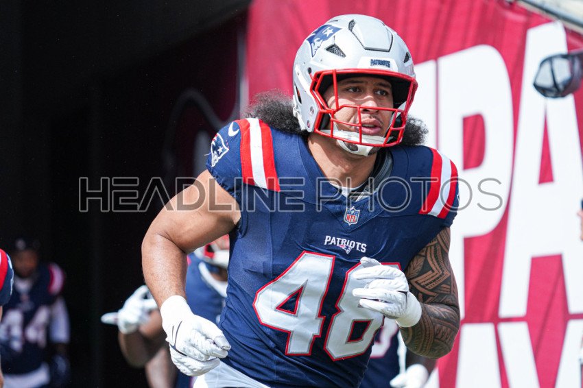 Tampa Bay, Florida, USA, November 9, 2025, New England Patriots player Jahlani Tavai #48 runs out of the tunnel at Raymond James Stadium. (Photo Credit: Marty Jean-Louis)