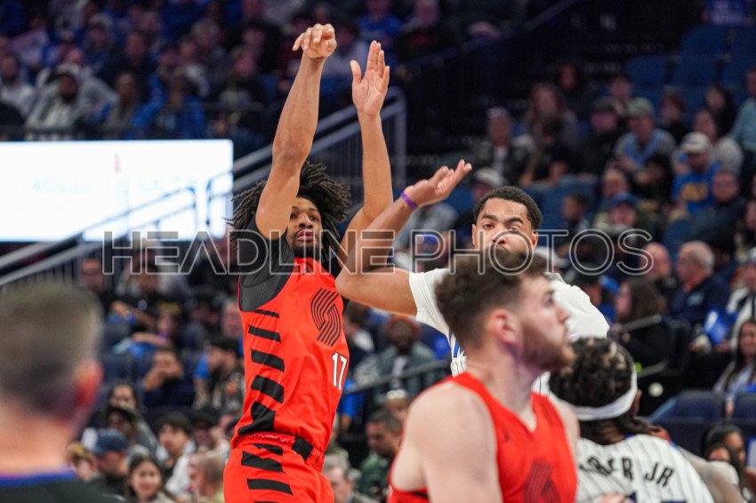 Orlando, Florida, USA, November 10, 2025, Portland Trail Blazers guard Shaedon Sharpe #17 shoots a three at the Kia Center. (Photo Credit: Marty Jean-Louis)