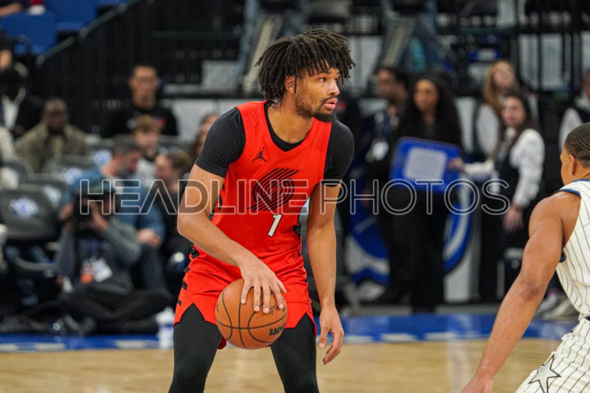 Orlando, Florida, USA, November 10, 2025, Portland Trail Blazers guard Blake Wesley #1 moves forward at the Kia Center. (Photo Credit: Marty Jean-Louis)
