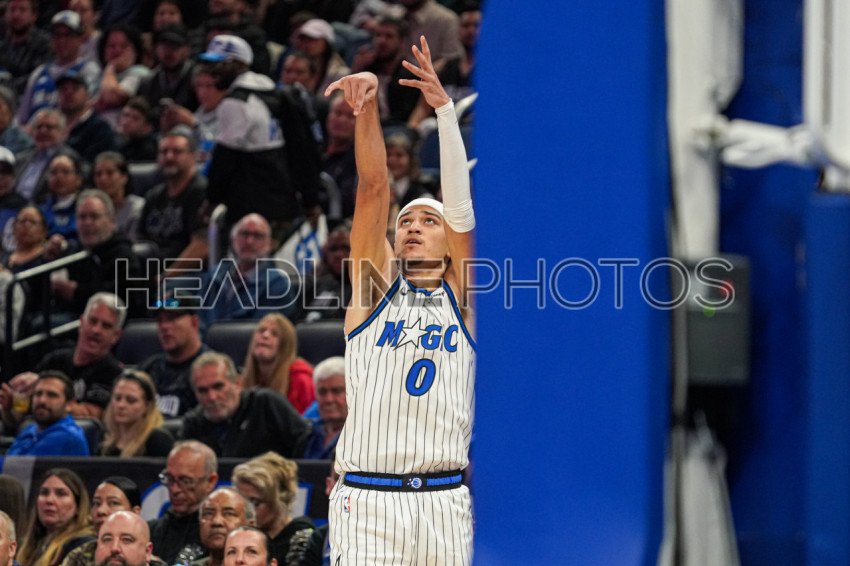 Orlando, Florida, USA, November 10, 2025, Orlando Magic guard Anthony Black #0 shoots a three at the Kia Center. (Photo Credit: Marty Jean-Louis)