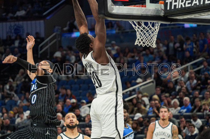 Orlando, Florida, USA, November 14, 2025, Brooklyn Nets fcenter Day'Ron Sharpe #20 makes a dunk at the Kia Center. (Photo Credit: Marty Jean-Louis)