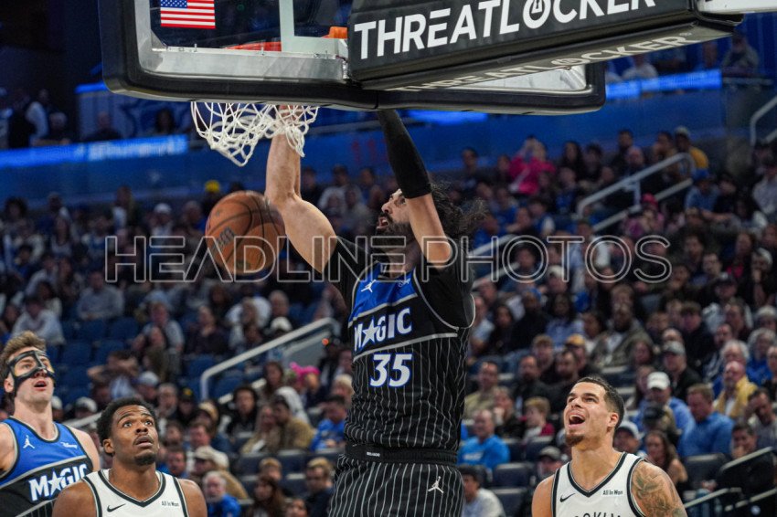 Orlando, Florida, USA, November 14, 2025, Orlando Magic center Goga Bitadze #35 makes a dunk at the Kia Center. (Photo Credit: Marty Jean-Louis)