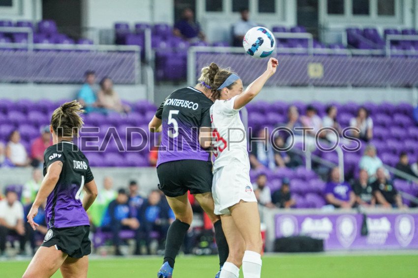 Orlando, Florida, USA, March 19, 2022, Washington Spirit Forward Ashley Hatch #33 wins the header at Exploria Stadium. (Photo Credit: Marty Jean-Louis)