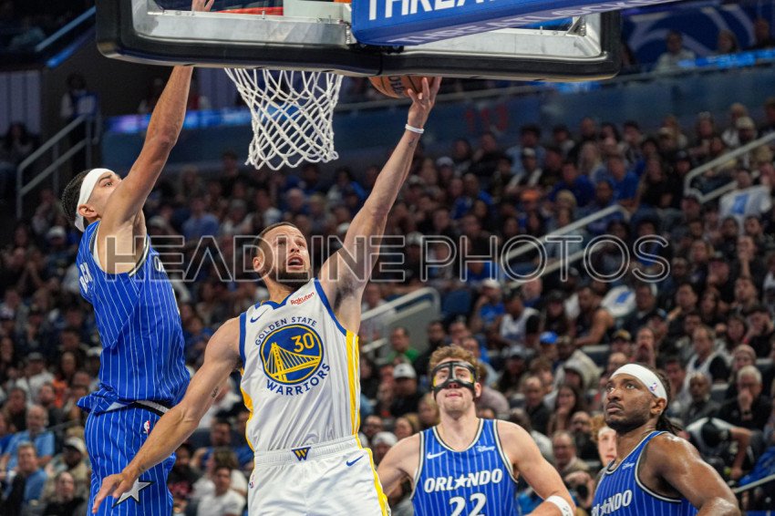 Orlando, Florida, USA, November 18, 2025, Golden State Warriors player Stephen Curry #30 makes a layup at the Kia Center. (Photo Credit: Marty Jean-Louis)