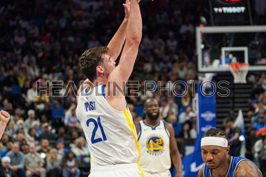 Orlando, Florida, USA, November 18, 2025, Golden State Warriors center Quinten Post #21 attempt to score at the Kia Center. (Photo Credit: Marty Jean-Louis)