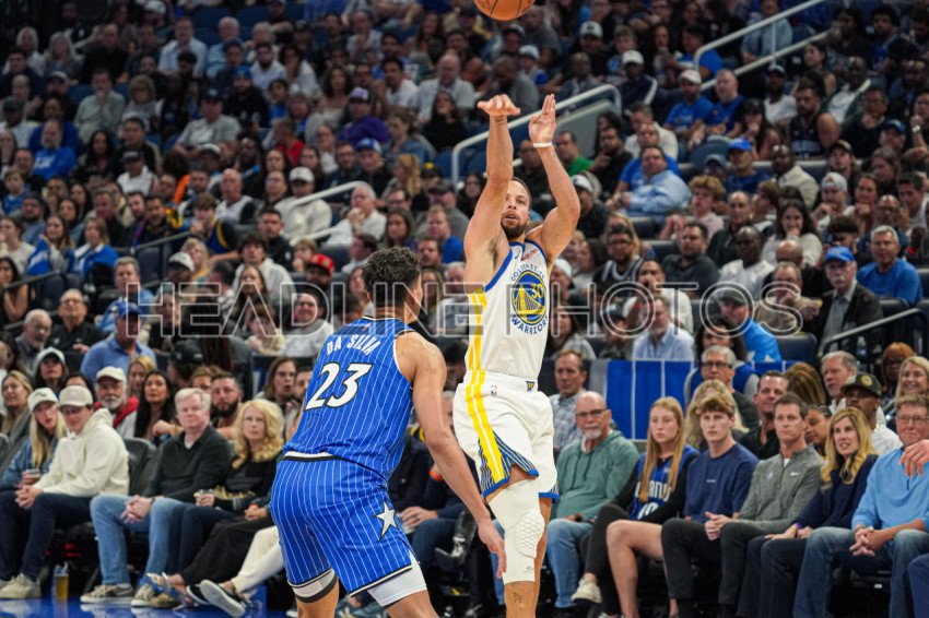 Orlando, Florida, USA, November 18, 2025, Golden State Warriors guard Stephen Curry #30 shoots a three at the Kia Center. (Photo Credit: Marty Jean-Louis)