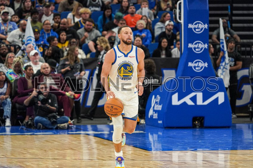 Orlando, Florida, USA, November 18, 2025, Golden State Warriors guard Stephen Curry #30 moves forward at the Kia Center. (Photo Credit: Marty Jean-Louis)
