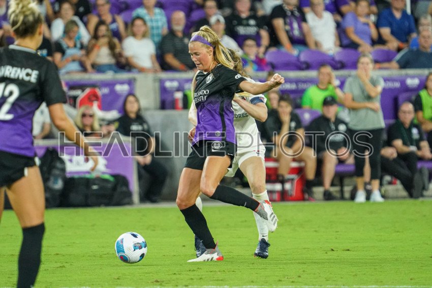 Orlando, Florida, USA, March 19, 2022, Orlando Pride defender Megan Montefusco #5 fight to keep the ball during the first half at Exploria Stadium. (Photo Credit: Marty Jean-Louis)