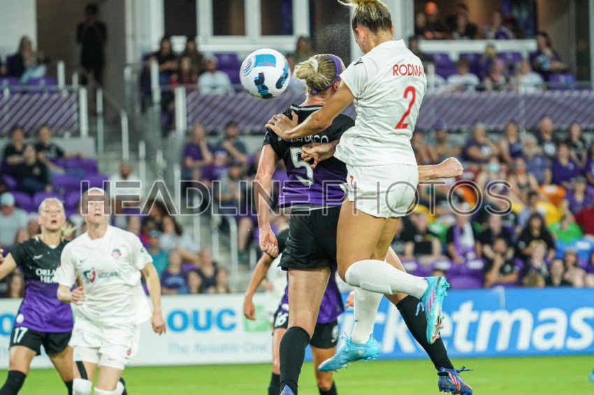 Orlando, Florida, USA, March 19, 2022, Washington Spirit Forward Trinity Rodman #2 attempt to score with a header in the first half at Exploria Stadium. (Photo Credit: Marty Jean-Louis)
