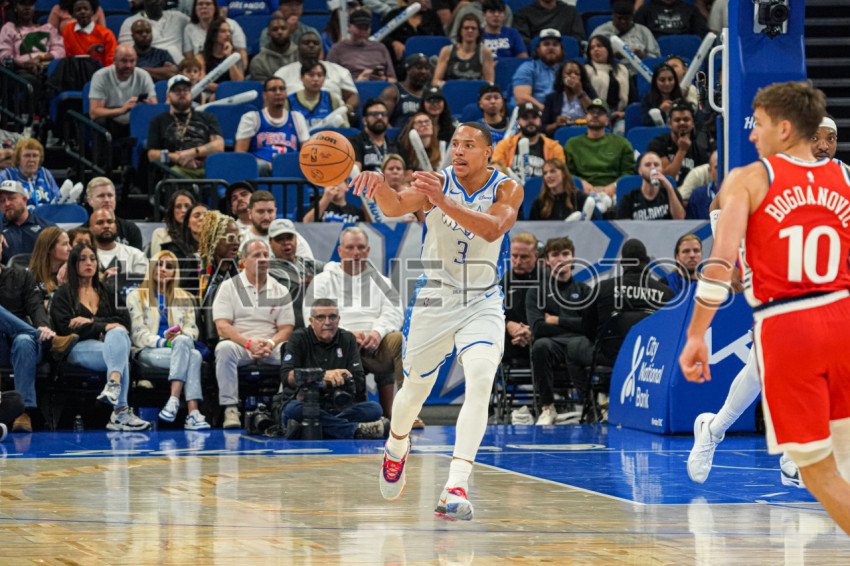 Orlando, Florida, USA, November 20, 2025, Orlando Magic's Demond Bane #3 makes a pass at the Kia Center. (Photo Credit: Marty Jean-Louis)
