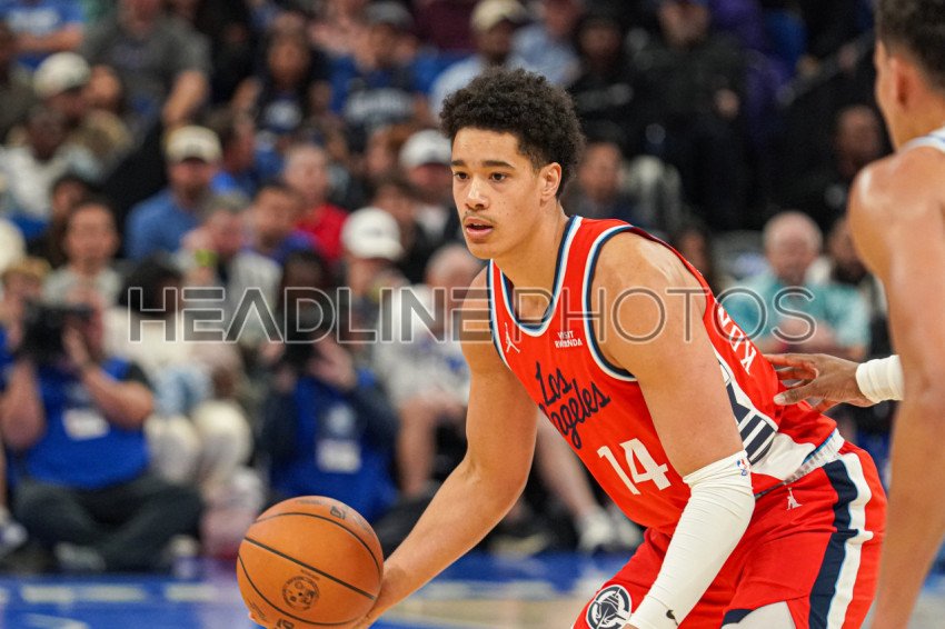 Orlando, Florida, USA, November 20, 2025, Los Angeles Clippers guard Kobe Sanders #4 look to make a pass at the Kia Center. (Photo Credit: Marty Jean-Louis)