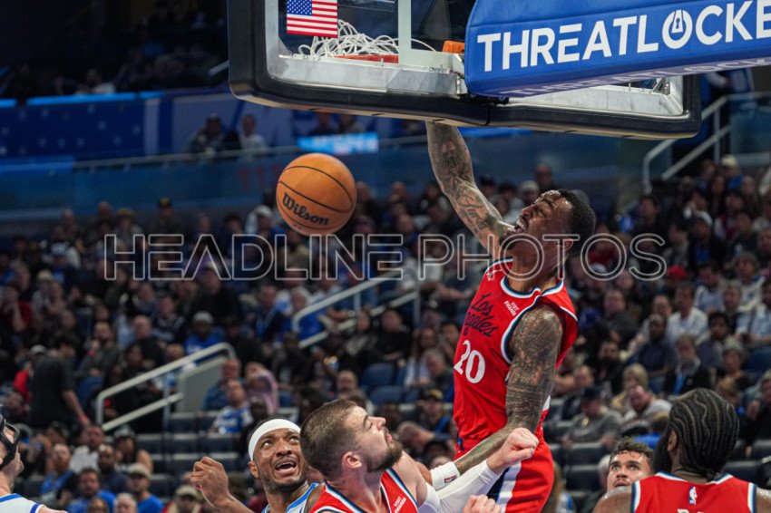 Orlando, Florida, USA, November 20, 2025, Los Angeles Clippers forward John Collins #20 makes a dunk at the Kia Center. (Photo Credit: Marty Jean-Louis)