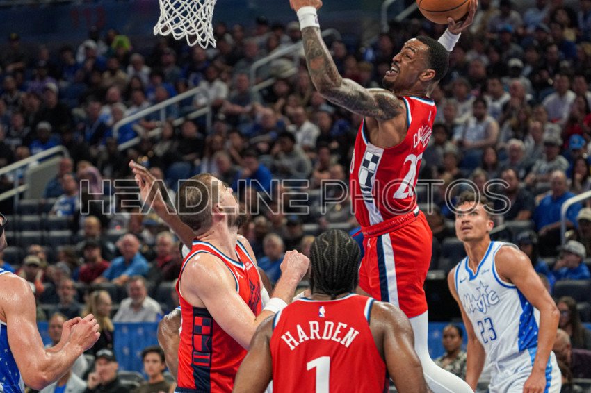 Orlando, Florida, USA, November 20, 2025, Los Angeles Clippers forward John Collins #20 makes a dunk at the Kia Center. (Photo Credit: Marty Jean-Louis)