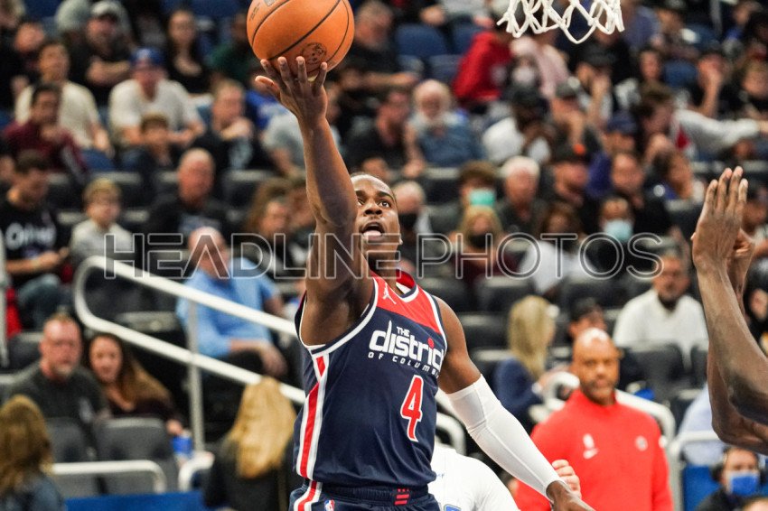 Orlando, Florida, USA, November 13, 2021, Washington Wizards Guard Aaron Holiday #4 makes a layup at the Amway Center. (Photo Credit: Marty Jean-Louis)