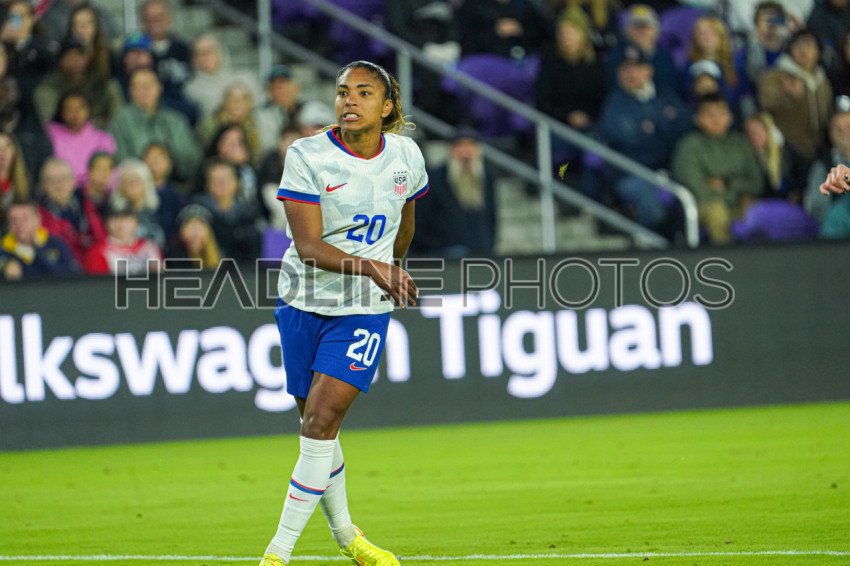 Orlando, USA, November 28, 2025, U.S. National Women's player Catarina Macario #20 shoots and scores match at Inter&Co Stadium. (Photo Credit: Marty Jean-Louis)