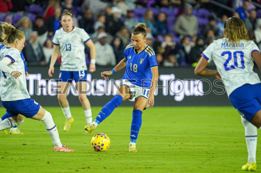 Orlando, USA, November 28, 2025, Italy's Women National Team player Arianna Caruso #18 controls the pass at Inter&Co Stadium. (Photo Credit: Marty Jean-Louis)