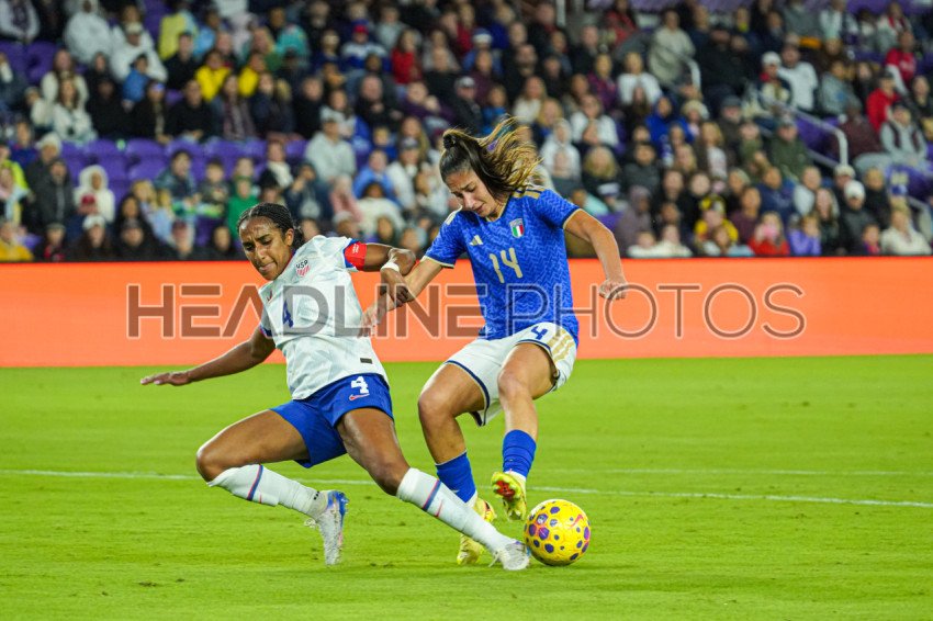 Orlando, USA, November 28, 2025, U.S. National Women's Team player Naomi Girma #4 defends the ball at Inter&Co Stadium. (Photo Credit: Marty Jean-Louis)
