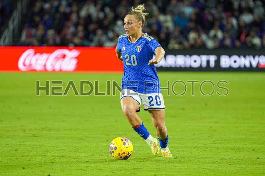 Orlando, USA, November 28, 2025, Italy's Women National Team player Giada Greggi #20 look to make a pass in a friendly match at Inter&Co Stadium. (Photo Credit: Marty Jean-Louis)