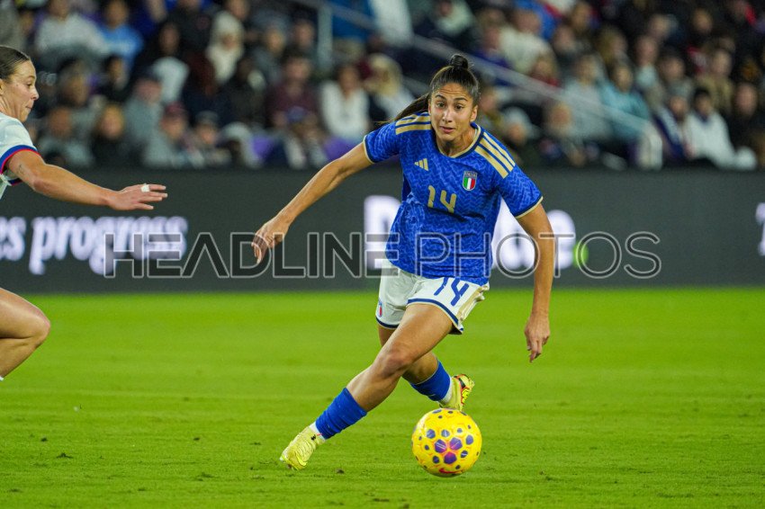 Orlando, USA, November 28, 2025, Italy's Women National Team player Chiara Beccari #14 rushes forward at Inter&Co Stadium. (Photo Credit: Marty Jean-Louis)