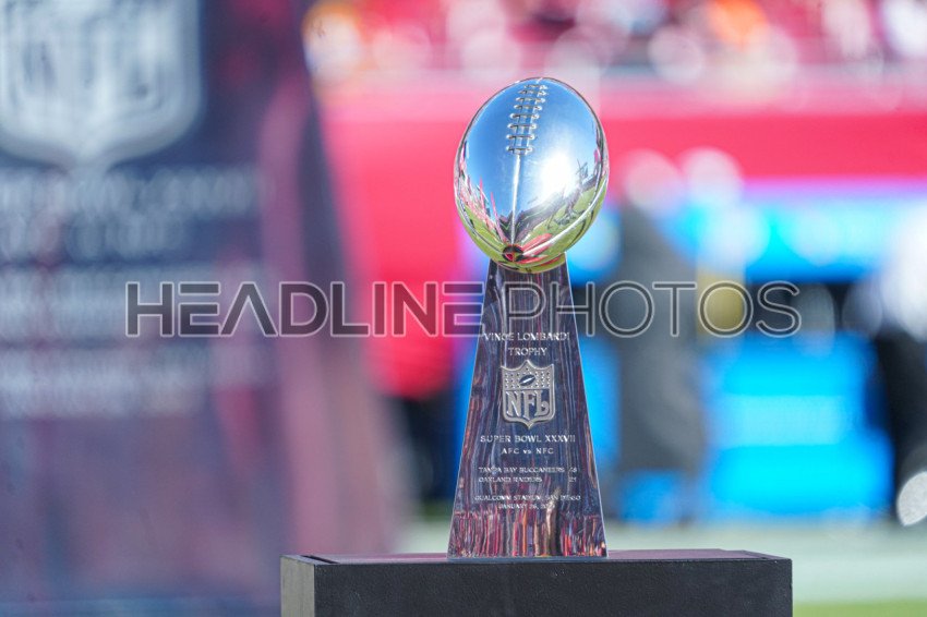 Tampa Bay, Florida, USA, November 30, 2025, Vince Lombardi Trophy at Raymond James Stadium. (Photo Credit: Marty Jean-Louis)