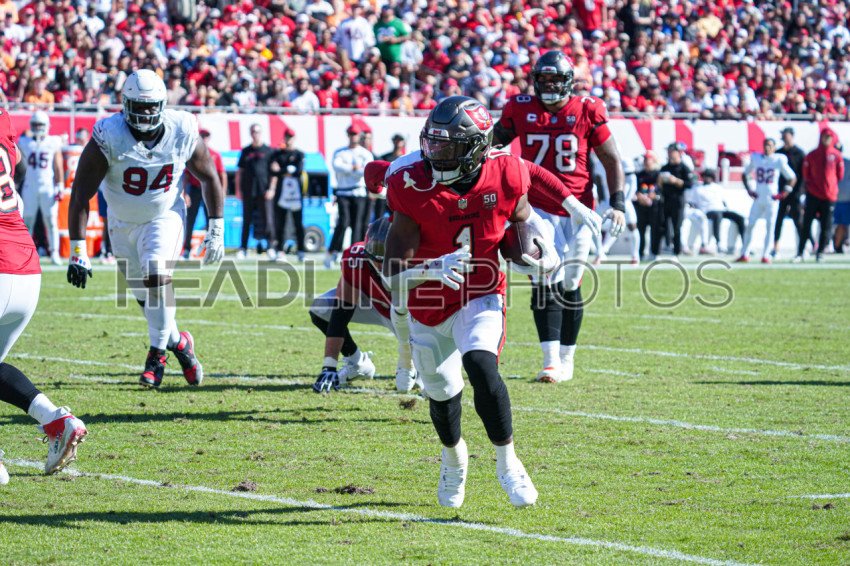 Tampa Bay, Florida, USA, November 30, 2025, Tampa Bay Buccaneers running back Rachaad White #1 makes a run at Raymond James Stadium. (Photo Credit: Marty Jean-Louis)