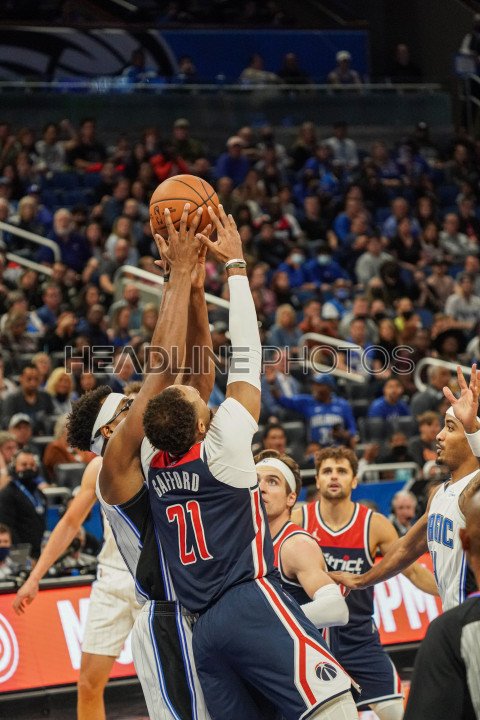 Orlando, Florida, USA, November 13, 2021, Washington Wizards Center Daniel Gafford #21 and Orlando's Wendell Carter Jr #34 fight for the ball during the second half at the Amway Center. (Photo Credit: Marty Jean-Louis)