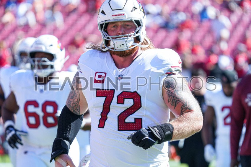 Tampa Bay, Florida, USA, November 30, 2025, Arizona Cardinals player Jon Gaines II #72 at Raymond James Stadium. (Photo Credit: Marty Jean-Louis)