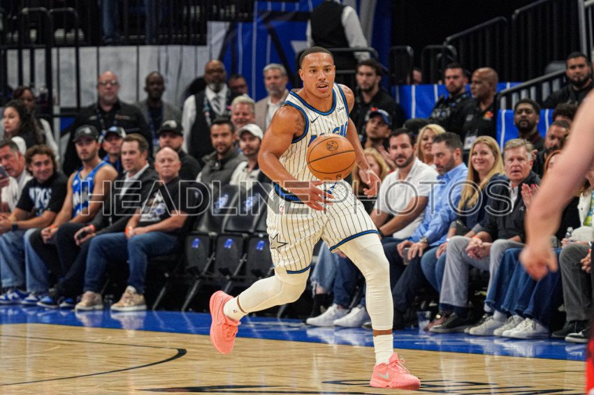 Orlando, Florida, USA, December 1, 2025, Orlando Magic guard Desmond Bane #3 rushes forward after making a steal at the Kia Center. (Photo Credit: Marty Jean-Louis)