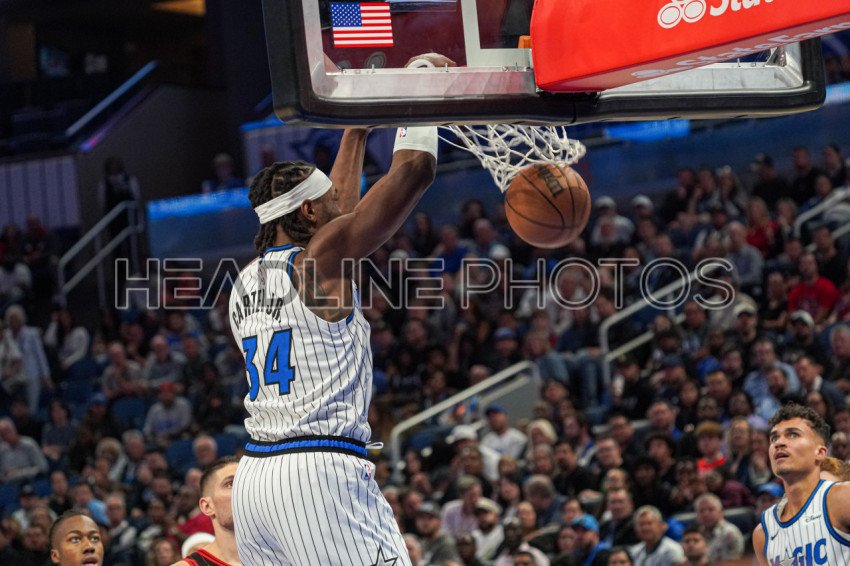 Orlando, Florida, USA, December 1, 2025, Orlando Magic center Wendell Carter Jr #34 makes a dunk at the Kia Center. (Photo Credit: Marty Jean-Louis)