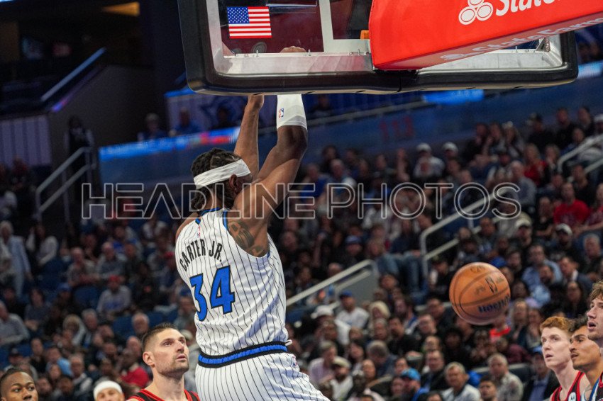 Orlando, Florida, USA, December 1, 2025, Orlando Magic center Wendell Carter Jr #34 makes a dunk at the Kia Center. (Photo Credit: Marty Jean-Louis)