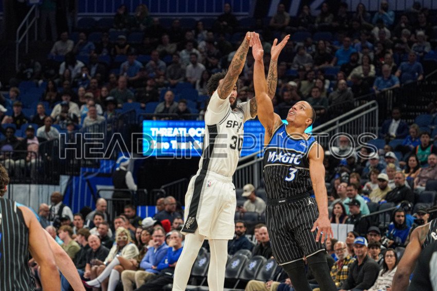Orlando, Florida, USA, December 3, 2025, San Antonio Spurs forward Julian Champagnie #30 shoots a three at the Kia Center. (Photo Credit: Marty Jean-Louis)