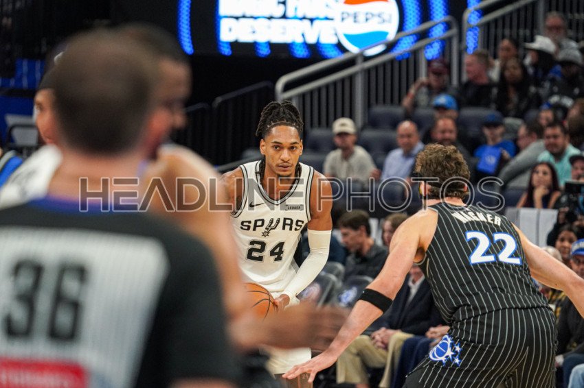 Orlando, Florida, USA, December 3, 2025, San Antonio Spurs guard Devin Vassell #24 looks to make a pass at the Kia Center. (Photo Credit: Marty Jean-Louis)