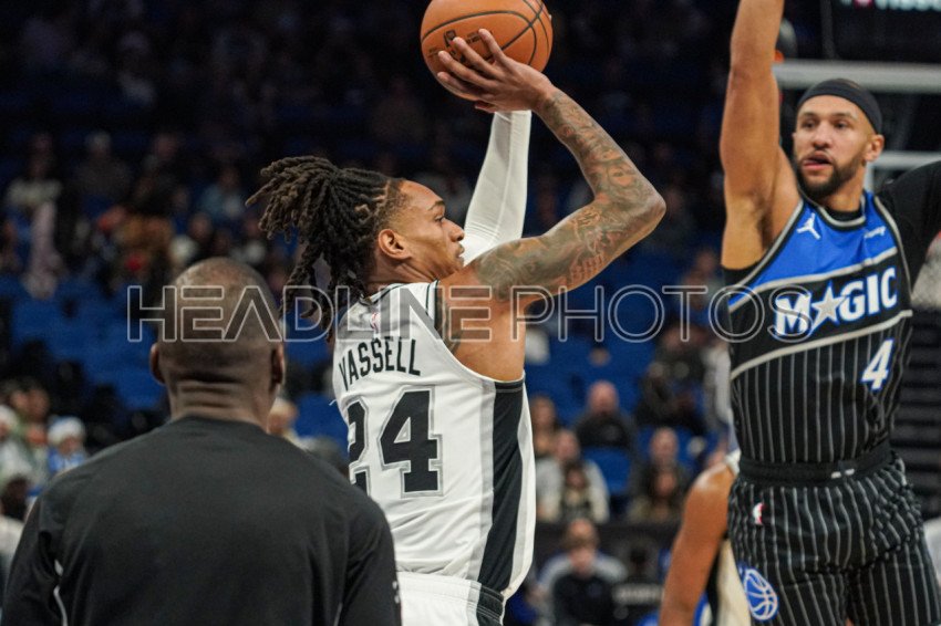 Orlando, Florida, USA, December 3, 2025, San Antonio Spurs guard Devin Vassell #24 shoots a three at the Kia Center. (Photo Credit: Marty Jean-Louis)