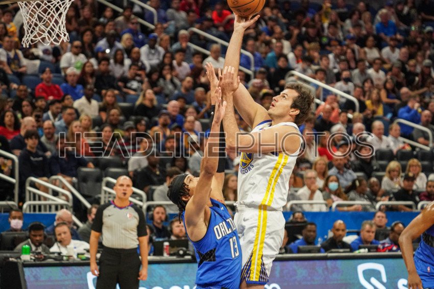 Orlando, Florida, USA, March 22, 2022, Golden State Warriors Power Forward Nemanja Bjelica #8 attempt to make a basket in the first half at the Amway Center. (Photo Credit: Marty Jean-Louis)