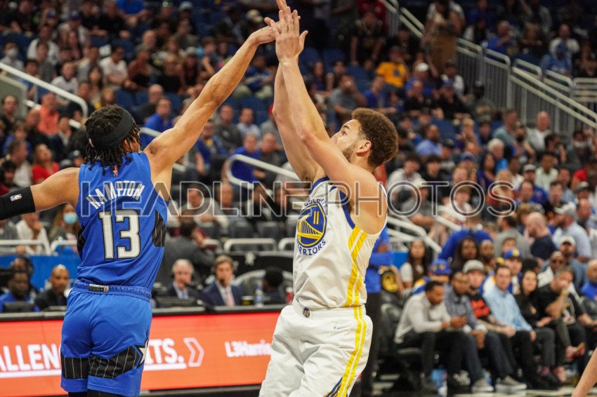 Orlando, Florida, USA, March 22, 2022, Golden State Warriors Shooting Guard Klay Thompson #11 takes a shot in the first quarter at the Amway Center. (Photo Credit: Marty Jean-Louis)