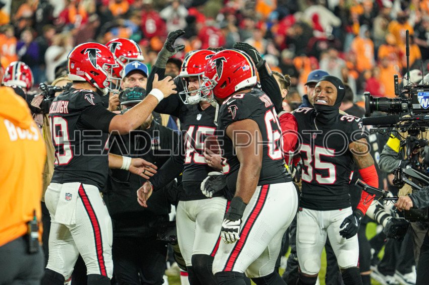 Tampa Bay, Florida, USA, December 11, 2025, Atlanta Falcons players celebrating win at Raymond James Stadium. (Photo Credit: Marty Jean-Louis)