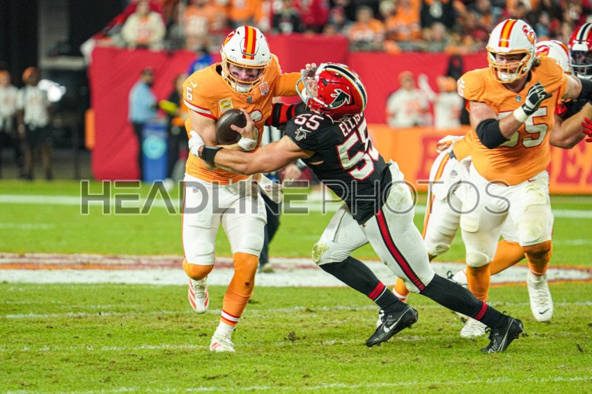 Tampa Bay, Florida, USA, December 11, 2025, Tampa Bay Buccaneers's Baker Mayfield #6 on the run at Raymond James Stadium. (Photo Credit: Marty Jean-Louis)