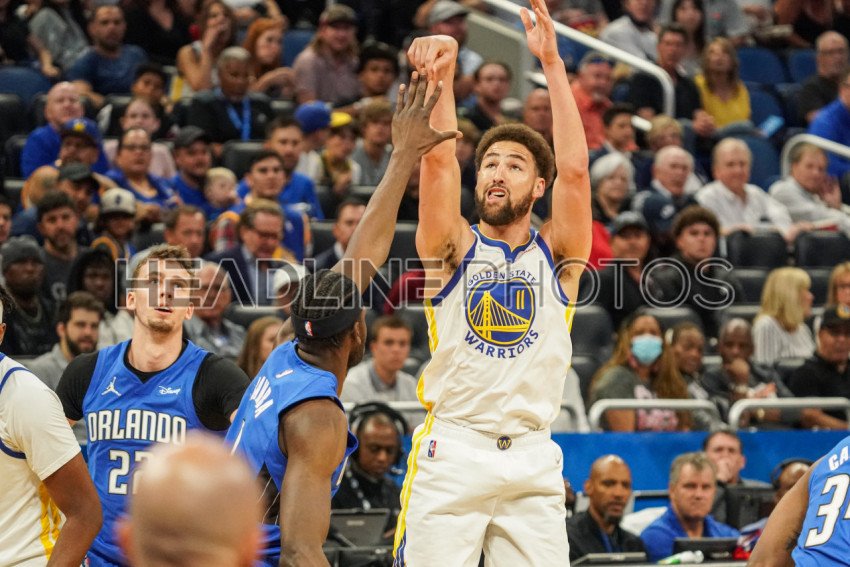 Orlando, Florida, USA, March 22, 2022, Golden State Warriors Shooting Guard Klay Thompson #11 shoots a three point shot in the first quarter at the Amway Center. (Photo Credit: Marty Jean-Louis)