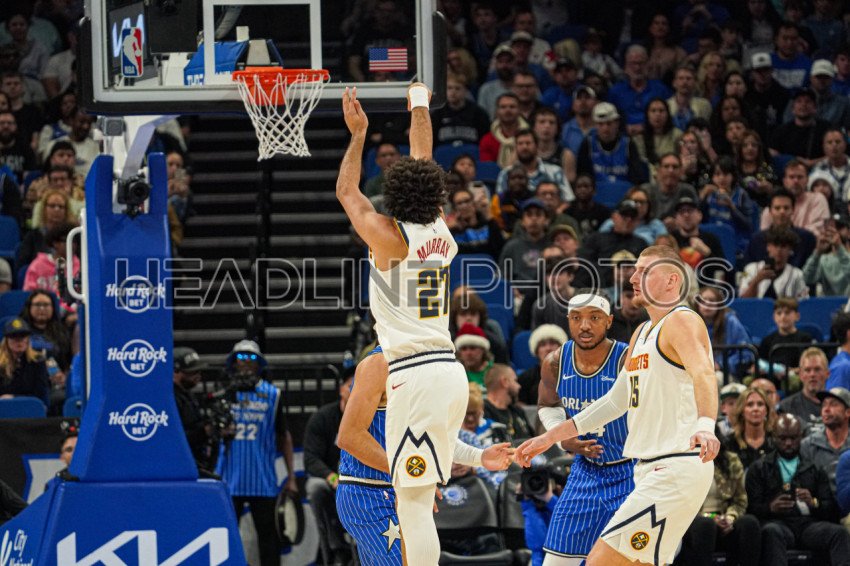 Orlando, Florida, USA, December 27, 2025, Denver Nuggets guard Jamal Murray #27 shoots a three at the Kia Center. (Photo Credit: Marty Jean-Louis)