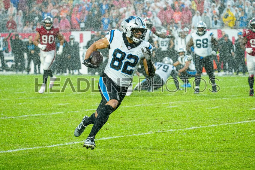 Tampa Bay, Florida, USA, January 3, 2026, Carolina Panthers Tight End Tommy Tremble #82 run to make a touchdown at Raymond James Stadium. (Photo Credit: Marty Jean-Louis)