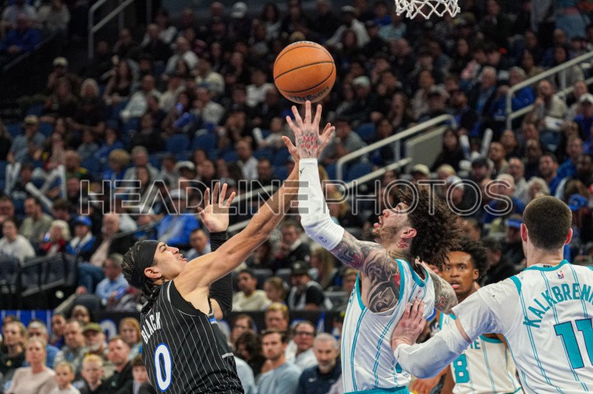 Orlando, Florida, USA, January 23, 2026, Charlotte Hornets player LaMelo Ball #1 and Orlando Magic guard Anthony Black #0 fight for the ball at the Kia Center. (Photo Credit: Marty Jean-Louis)