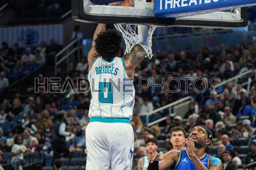 Orlando, Florida, USA, January 23, 2026, Charlotte Hornets forward Miles Bridges #0 makes a dunk at the Kia Center. (Photo Credit: Marty Jean-Louis)