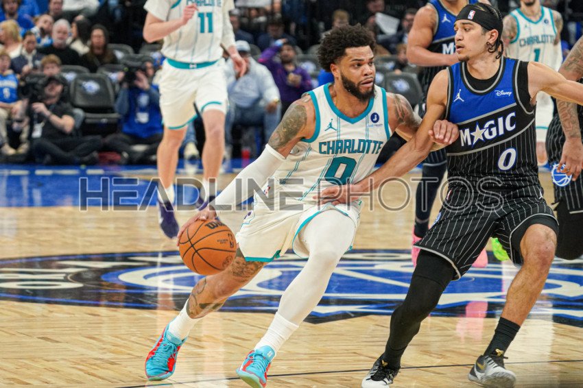 Orlando, Florida, USA, January 23, 2026, Charlotte Hornets forward Miles Bridges #0 rushes forward at the Kia Center. (Photo Credit: Marty Jean-Louis)