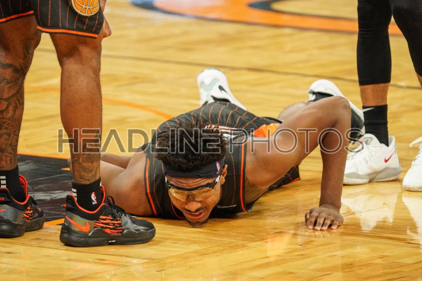Orlando, Florida, USA, November 24, 2021, Orlando Magic player Wendell Carter Jr #34 falls during the fourth quarter at the Amway Center. (Photo Credit: Marty Jean-Louis)