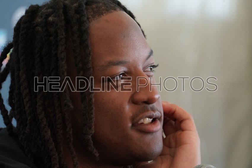 Khyiris Tonga During the New England Patriots Press Conference at the Marriot Hotel, Santa Clara, California, USA