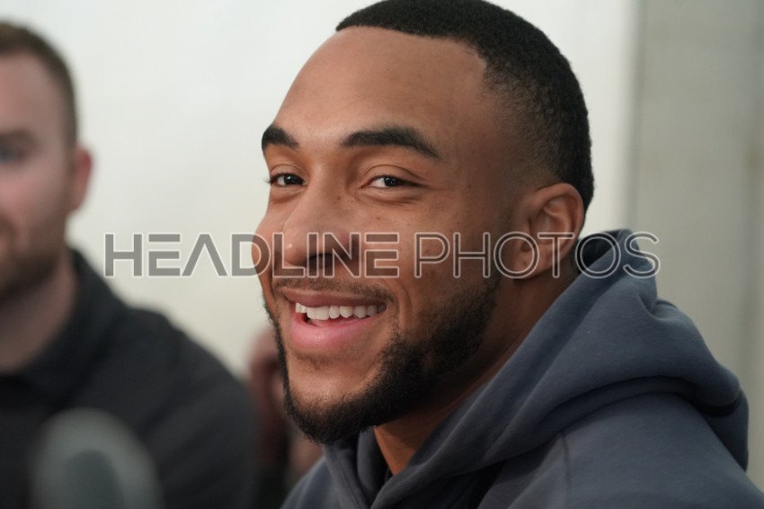 TreVeyon Henderson During the New England Patriots Press Conference at the Marriot Hotel, Santa Clara, California, USA