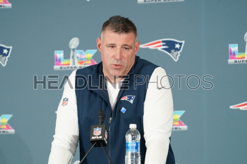 Head Coach Mike Vrabel During the New England Patriots Press Conference at the Marriot Hotel, Santa Clara, California, USA